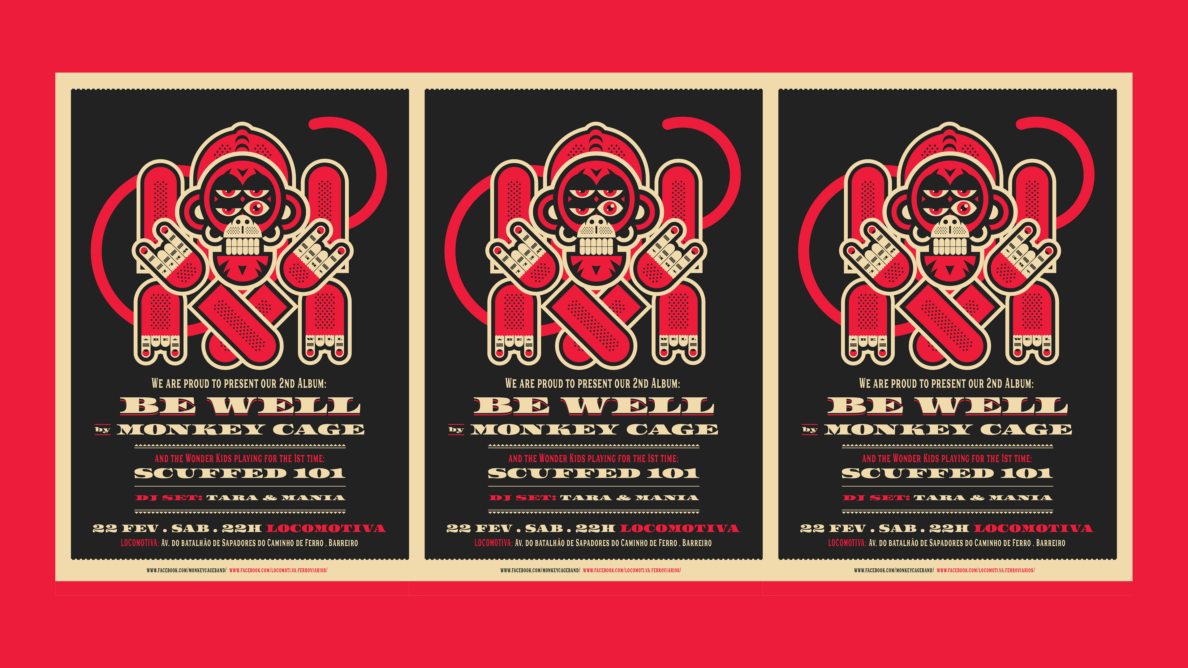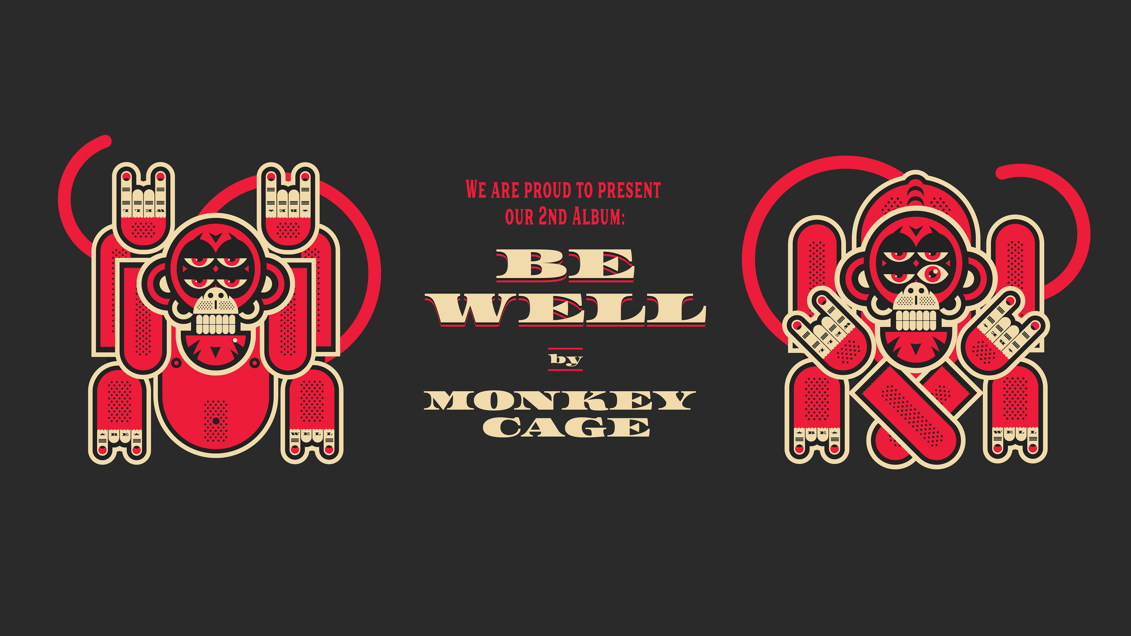 On February 22, 2020, the rock band, Monkey Cage releases their second album - BE WELL. I made the graphic line of this again, this time with an illustration of a stylized monkey with four eyes, each of them symbolizing an element of the band.